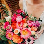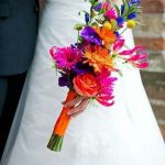 Sade gelinlik el çiçeği için gelinlik modeli olarak minimal tarzda renkli gelin buketi seçenekleri incelenmelidir.