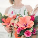 Kumsalda yapılan düğün için gelin buketi içinde deniz kabuğu süslemeleri ve mavi rengi kullanabilirsiniz.