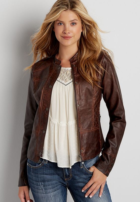 kahverengi deri ceket kombin