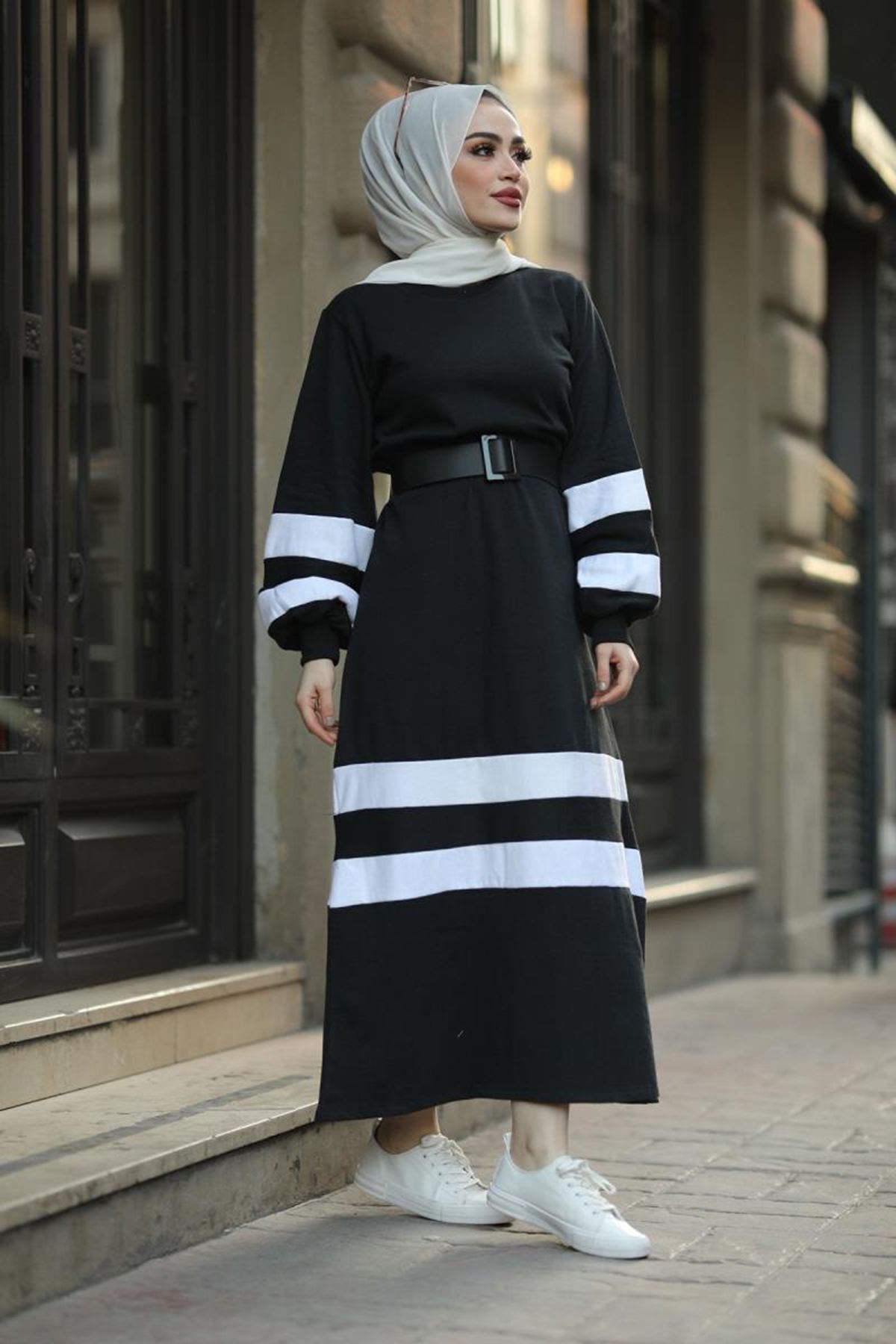 Siyah beyaz elbise tesettür kombinleri