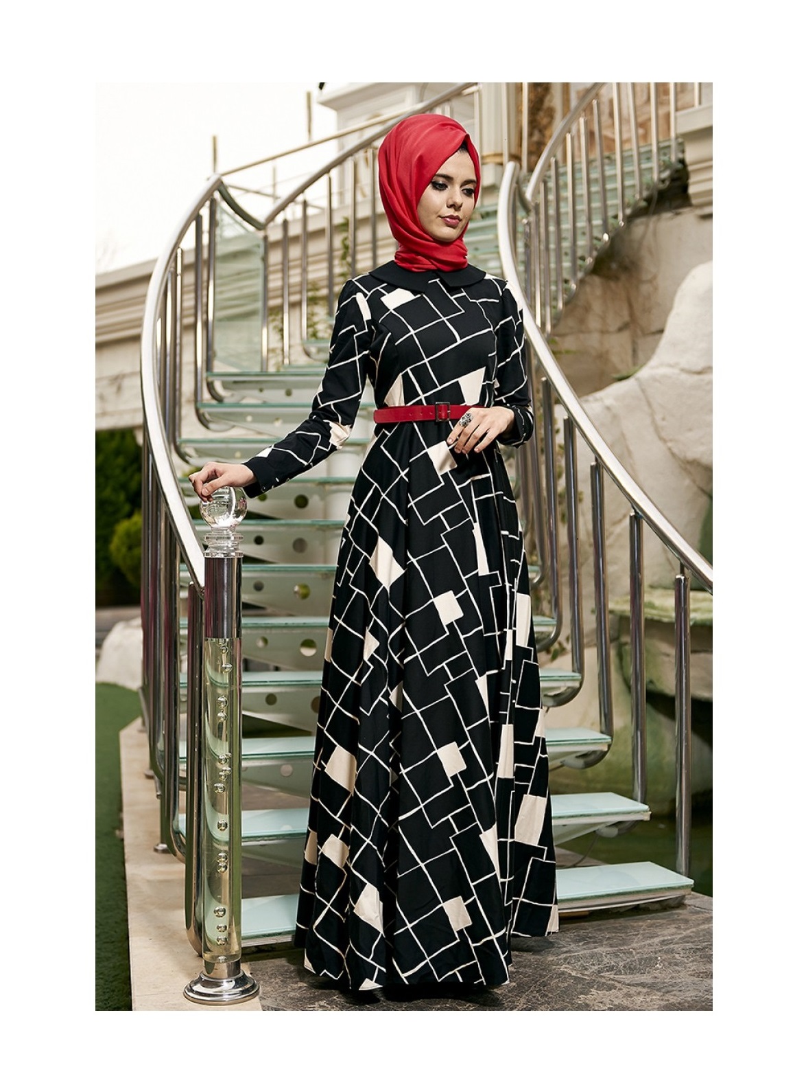Siyah beyaz elbise tesettür kombinleri