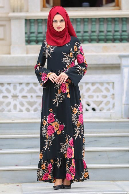 Siyah çiçekli elbise